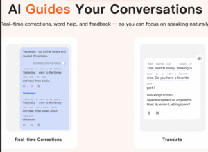 Instead of stiff, textbook-like lessons, it offers interactive conversations with AI partners and real people around the world. Learners get instant corrections, feedback, and guidance — almost like having a patient teacher by their side 24/7.